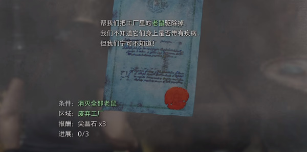 1、理任略来到废气工厂,生化在大门口接取悬赏任务。危机务攻