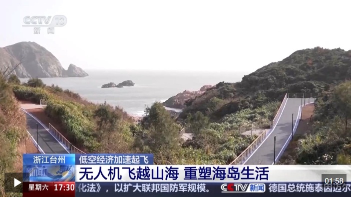 而在浙江台州,前不久开通了12条常态化海岛联运航线,通过无人机在相距几十公里的海岛和陆地间常态化运送货物,破解海岛物流难题,更缩小陆岛生活的差距。
