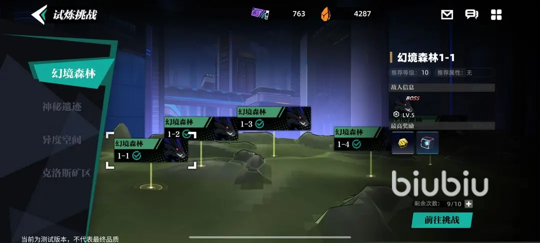 2、该模式一共有者四个小关卡,他们分别是幻影森林、神秘遗迹、异国空间、克洛框区。每个关卡都有不同的BOSS进行守护,玩家们可以提前查看到这些BOSS技能和属性,从而组建出合理的阵容来将他们打败。